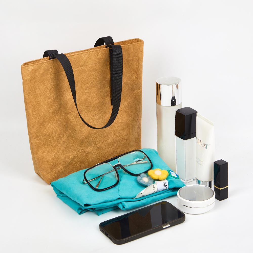 Eco Kraft Custom Shoulder Bag – Waterproof & Washable Paper Tote, Minimalist Reusable Bag
